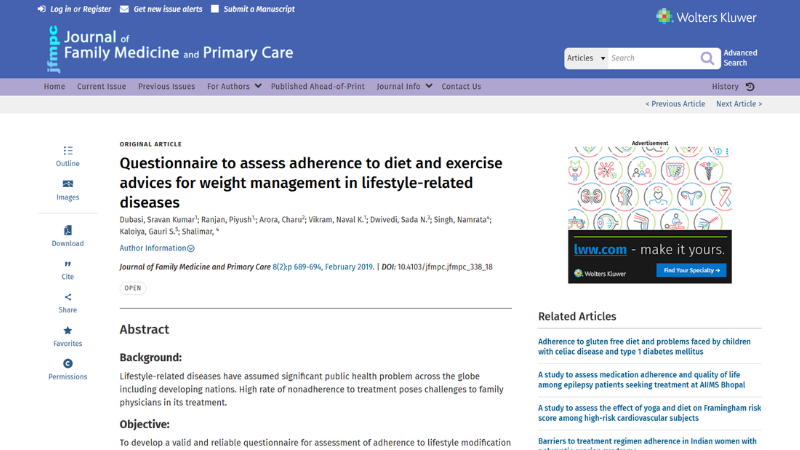 Questionnaire to assess adherence to diet and exercise advices for weight management in lifestyle-related diseases