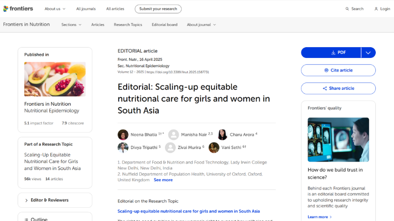 Editorial: Scaling-up equitable nutritional care for girls and women in South Asia