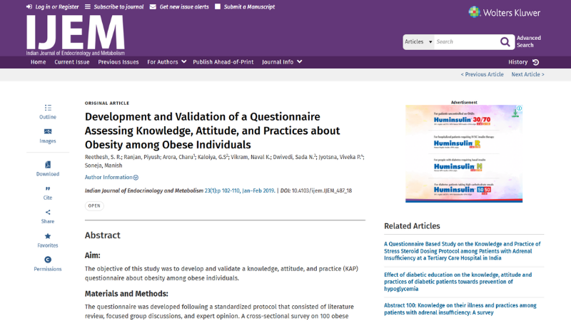 Development and Validation of a Questionnaire Assessing Knowledge, Attitude, and Practices about Obesity among Obese Individuals